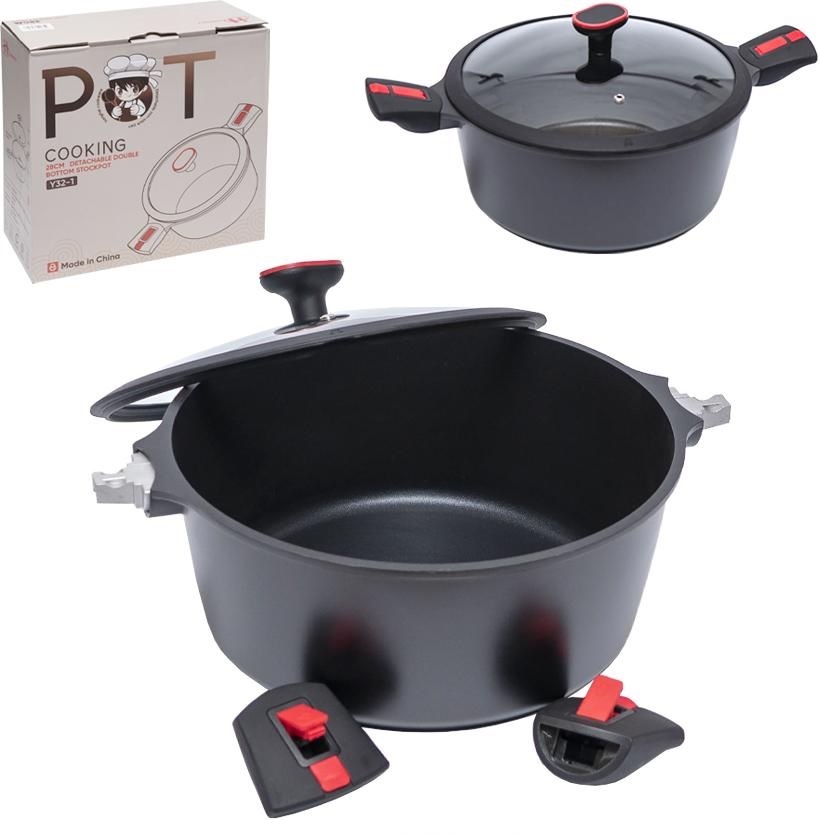 Каструля з кришкою 6 л YF749/747-28 чорна знімні ручки антипригар+індукц.d.28 l12.5