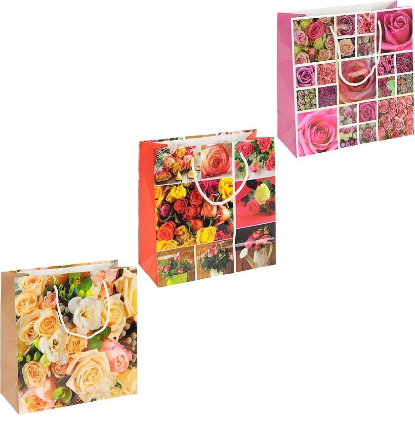 Подарунковий пакет квадрат Квіти 24*24*10 см (12шт) ціна за уп. 4003