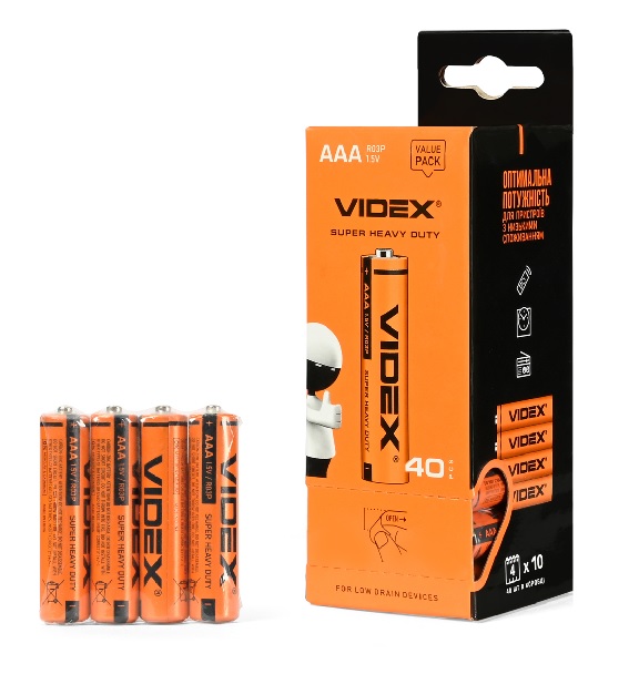 Батарейки VIDEX сольові R03/AAA 4 шт/пл (40шт/уп/1140шт/ящ) 290423
