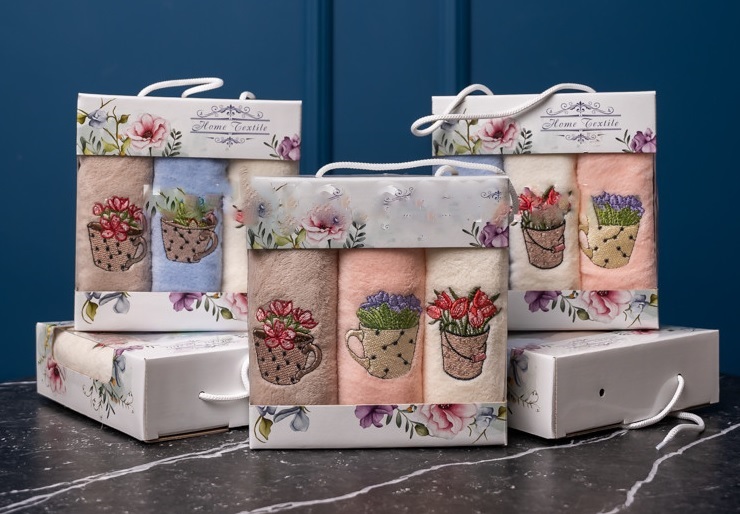 Рушник набір (3 шт/наб) Квіти в горщику мікрофібра 25*50 (320г/м2) ціна за набір