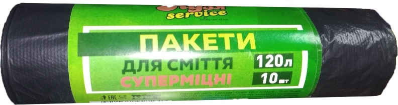 Пакети для сміття ТМ Кузя Сервіс 120л*10шт Horeca чорні (30шт) 3216