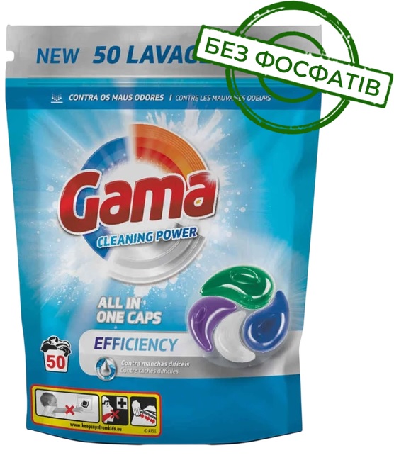Пральний порошок капсули ГАМА 4в1 проти складних забруднень(6/50шт) 1035